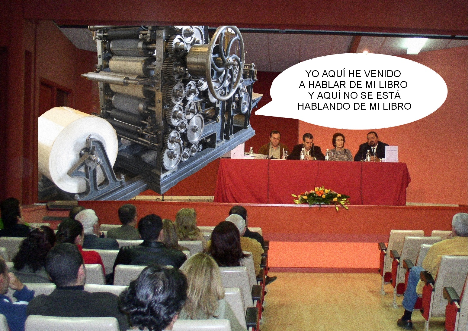 ¡Decepción en absoluto! La charla estuvo muy interesante y el tio me pareció inteligente, con sentido del humor y me aportó cosas. Sencillamente el punto ese, el de «escribo del tirón», es algo que he visto muy a menudo (a todos los niveles) y me dan ganas de agarrar a algunos de las solapas. Como esa peña que SIEMPRE sacaba sobresalientes y NUNCA estudiaba. No, tio. Las cosas no funcionan así. Entra en el espacio de lo posible que eso te ocurra alguna vez, pero…