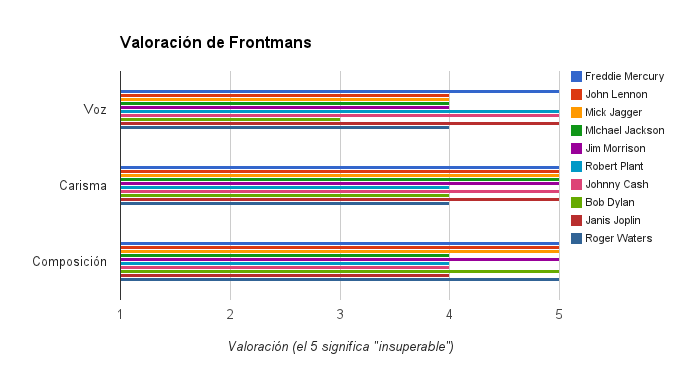 Así que me he quedado con estos diez: Mercury, Lennon, Jagger, Jackson, Morrison, Plant, Cash, Dylan, Joplin y Waters. Sí, sí… ya sé que la lista es totalmente discutible, pero tampoco quería tener demasiados. ¡Y tened en cuenta que hablo de frontmans, no de grupos!