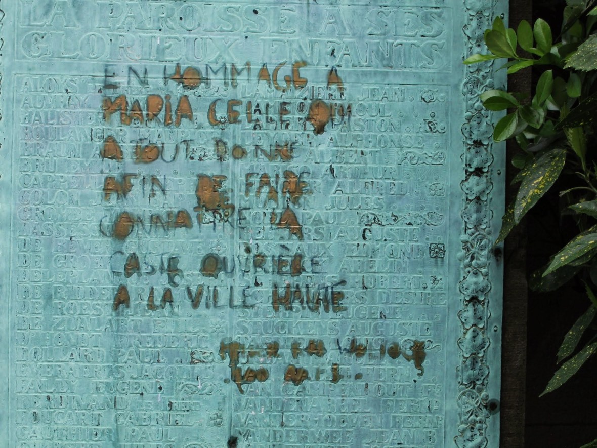 IMG_4672 julio 30, 02013 • 2048 × 1536 • Mensajes en las calles …»a María. Aquella que dio todo con el fin de dar a conocer a la casta obrera en la Villa Alta». (Bruselas)