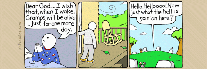 Nota: Sí, lo reconozco. Este texto es una derivada lejana, muy lejana, de esta viñeta de The Perry Bible Fellowship.