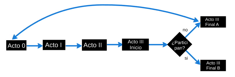 Adicionalmente, decidí que había determinadas historias, relatos que había ido recopilando y que se podían contar fuera del hilo principal. Más que nada para introducir temas, generar debate… cumplir con algunos de los requisitos dados y que me encajaban con las notas que había ido tomando. Así que ya tenía clarísima la macroestructura. Algo como esto:
