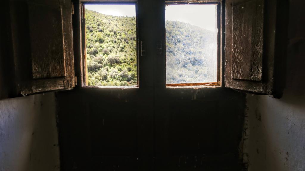 Regreso a esta cabaña, cada vez más innaccesible. Iré sacudiendo el polvo de las sillas. Comprobando la tirantez de las persianas. Adecentando el suelo y lubricando bisagras. Trasluciendo cristales.