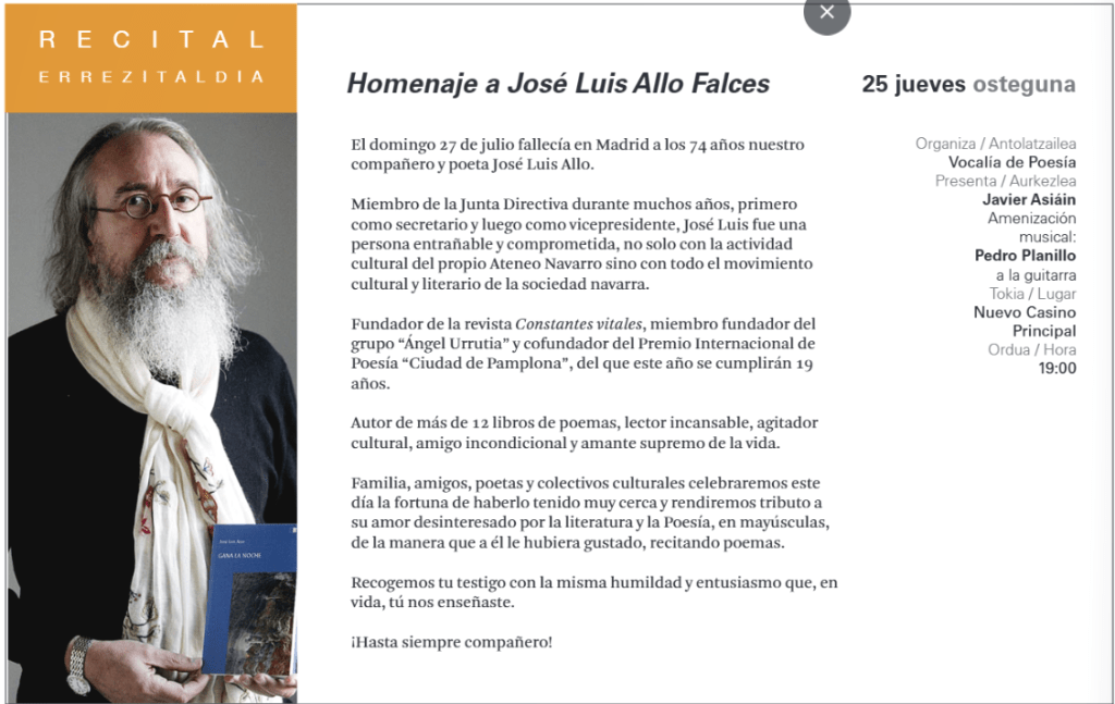 Tras la noticia -tan triste como esperada- me invitan a participar de un recital de homenaje entre amigos y allegados.